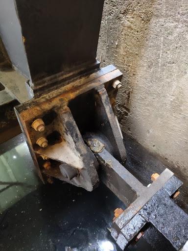 Once removed, the bridge underwent thorough examination, revealing a range of components requiring attention. Specialist braces needed to be fabricated to support the bridge during maintenance, due to its size and weight. Further analysis identified the need for structural welding and fabrication, along with repairs to radial spherical bearings, trunnion shafts, bushings, and the bridge cylinder bracket.